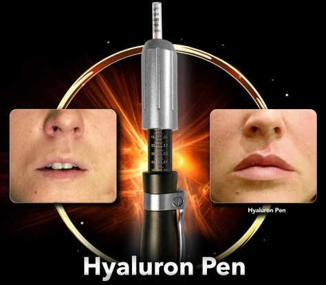 L’injection d’ acide hyaluronique dans la peau se fait sans aiguille : par air comprimé grâce au Hyaluron Pen, et sans douleur !